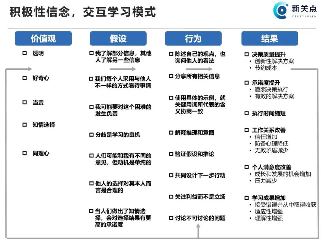 这些都是一些核心的价值观,它是和别人有效沟通的底层逻辑,它们决定你和他人沟通的行为,而最终通过行为导致什么结果。