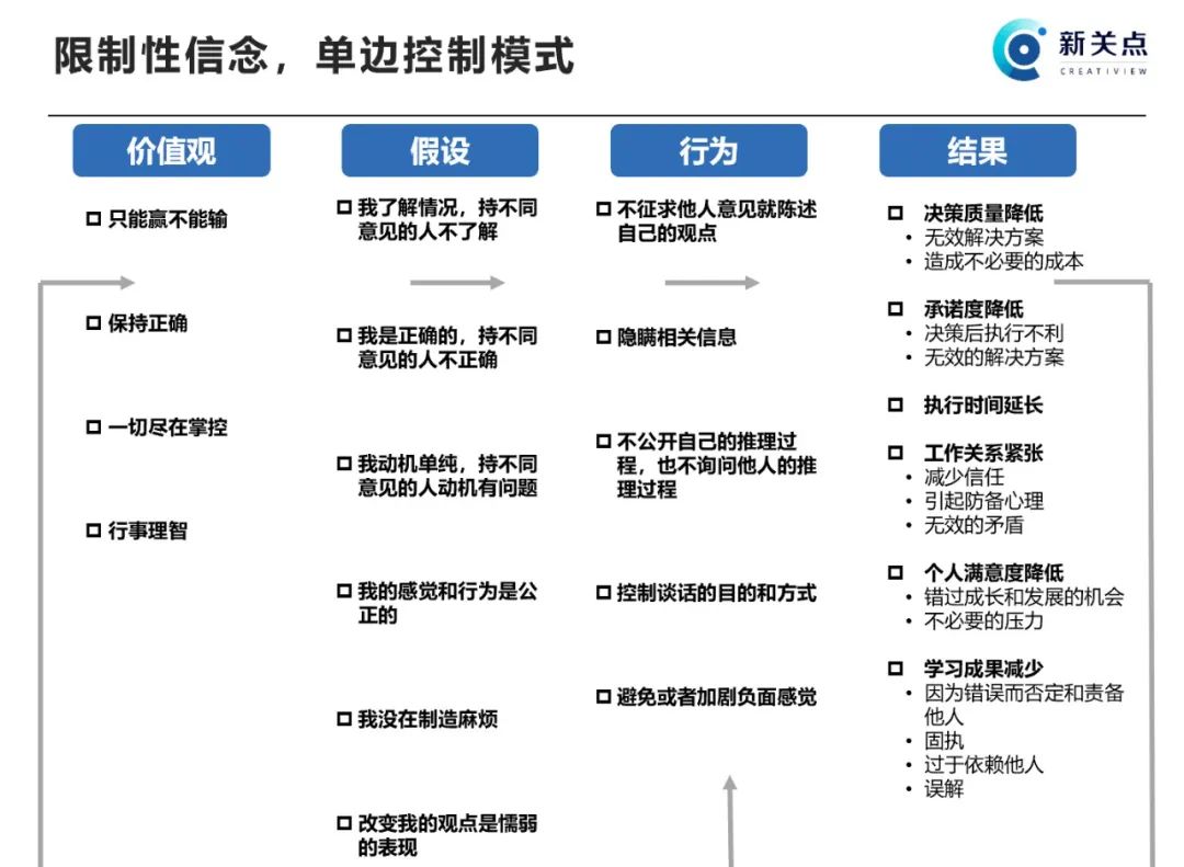 从逻辑方式上,单边控制模式的价值观有4种不良心态: