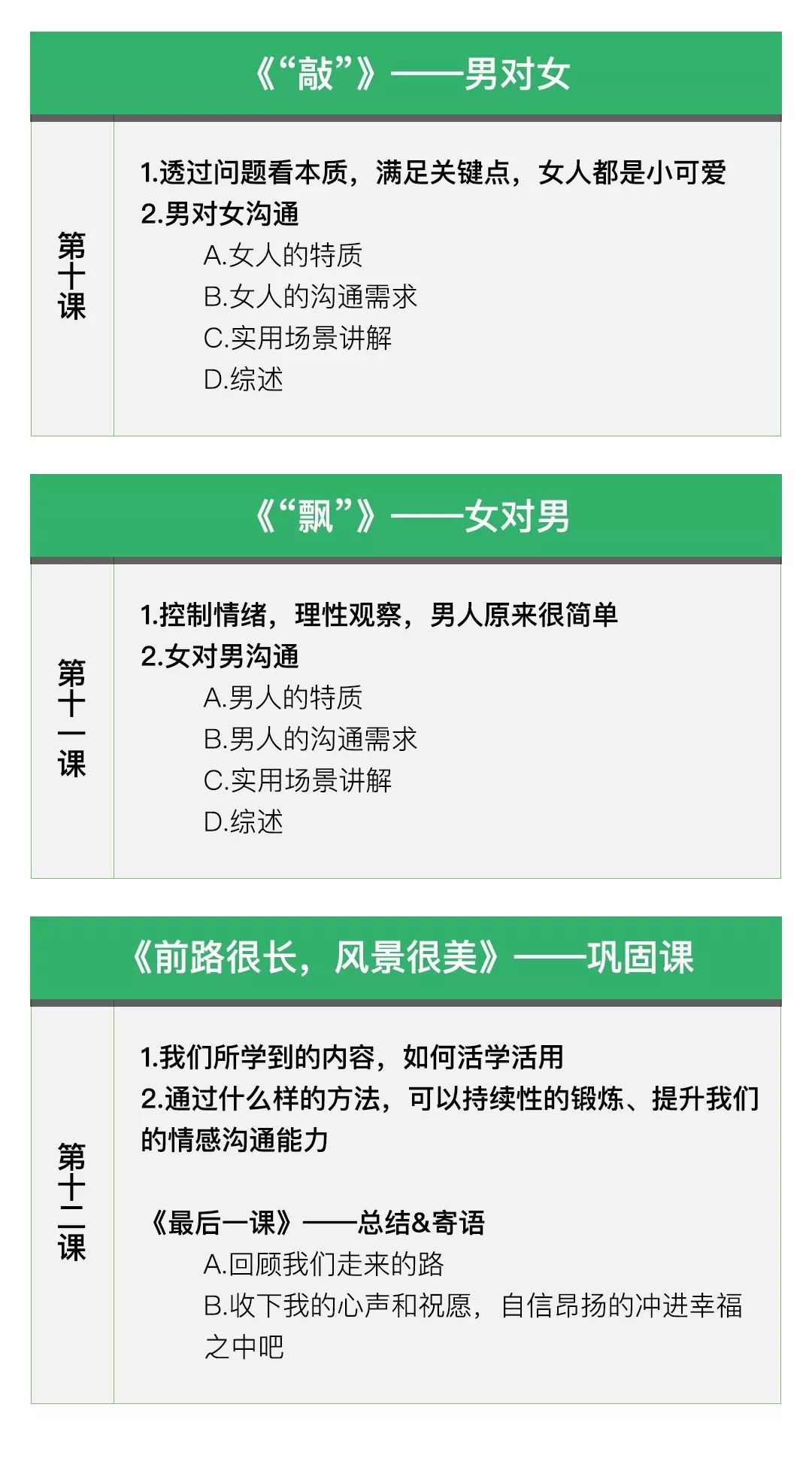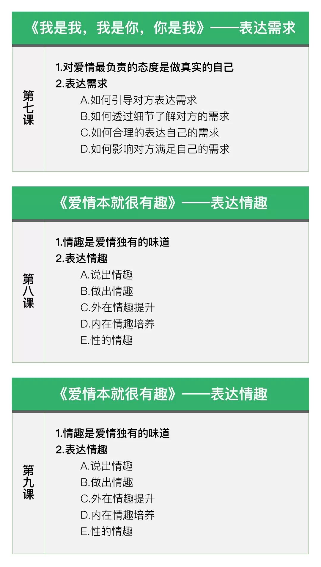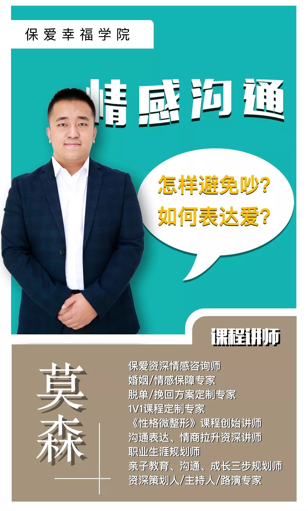 所以,为了帮助更多在情感中因为沟通不畅而饱受情感煎熬的人获得合理有效的解决方案,莫森老师研发了一套线上课程,把老师多年从事情感咨询和教育培训行业所积累的经验,凝练成内容丰富、简单易懂、实用性可落地性强的课程分享给大家。